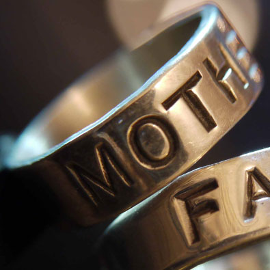 6mm wide sterling silver ring handstamped with the word MOTHERING.